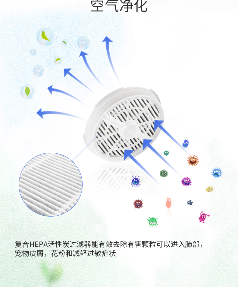 職場神器:配以HEPA濾網,可以有效吸附粉塵,過濾二手煙,360°進風,空氣環流快,加速負離子淨化,給辦公室一個舒適的環境。USB供電方式,輕鬆適配辦公室環境。