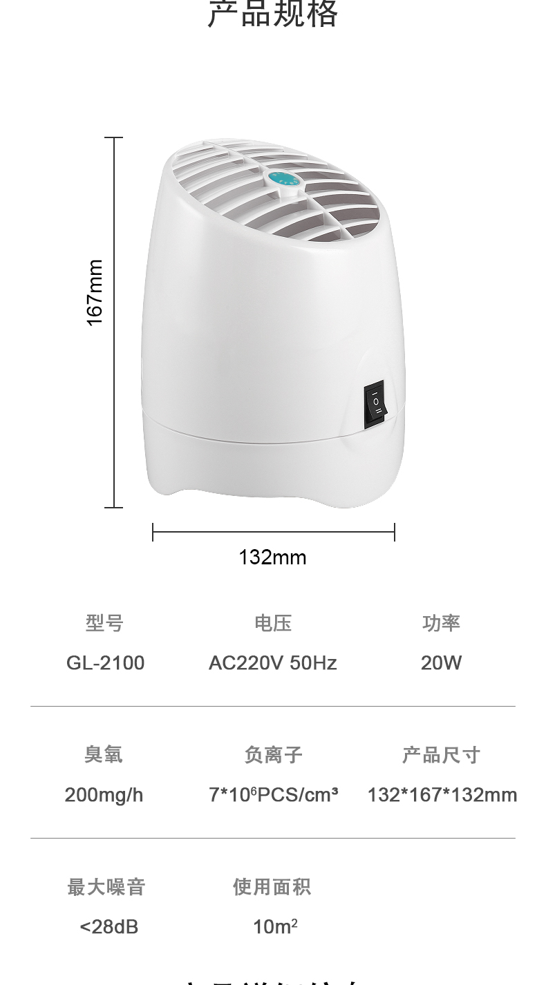 700萬負離子:不用出門就能體驗大自然的清新空氣,GL-2100持續釋放700萬負離子,可以改善情緒和精神狀態,增強免疫係統,提升注意力和專注力。同時負離子有助於清除空氣中的灰塵、花粉等顆粒物,減少空氣中的過敏原,對過敏性疾病患者有一定的緩解作用。