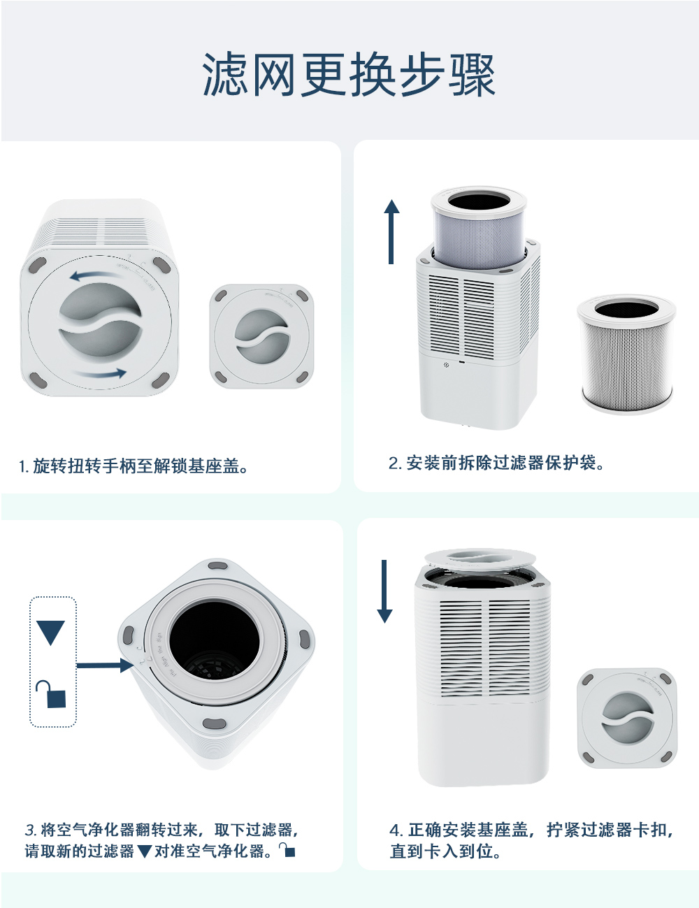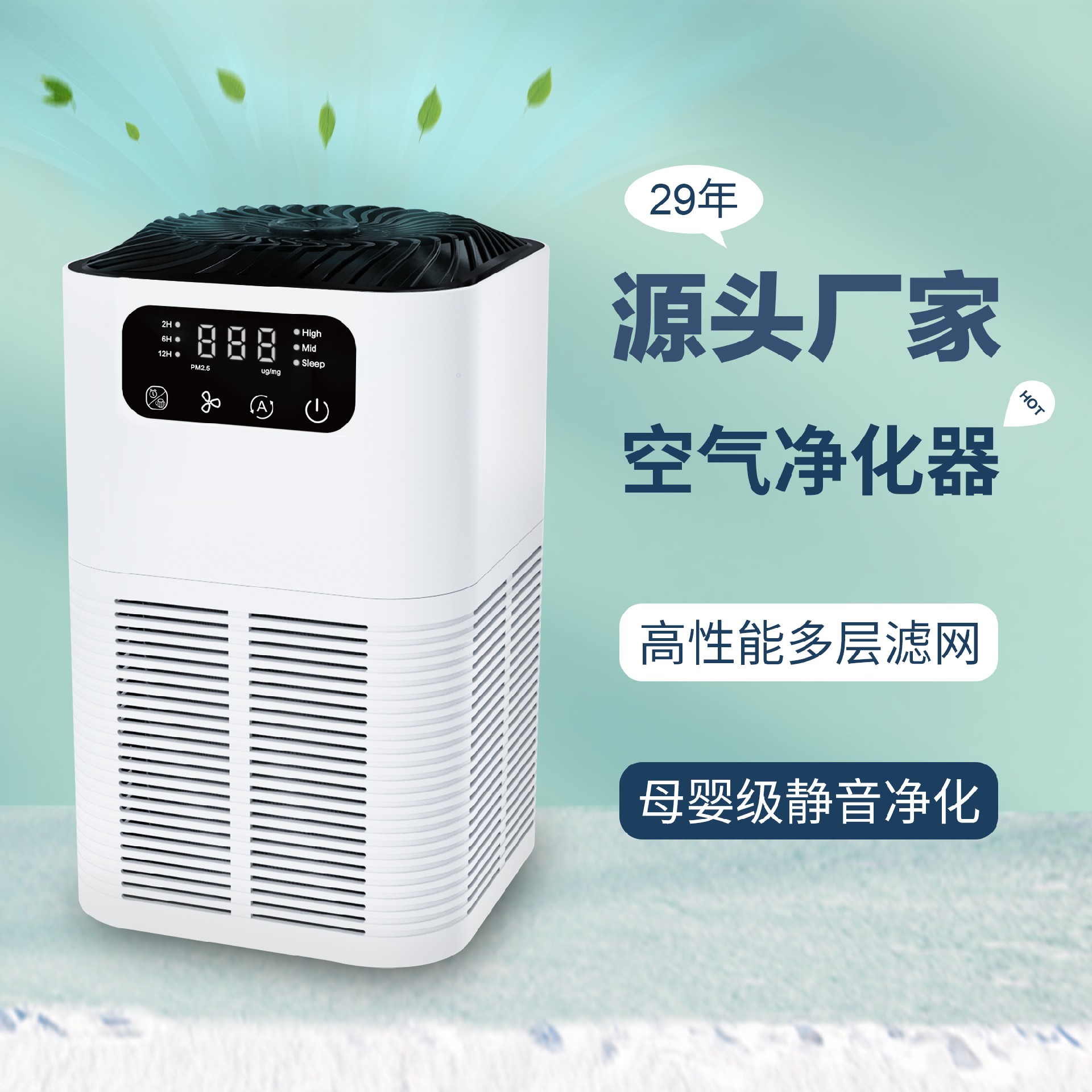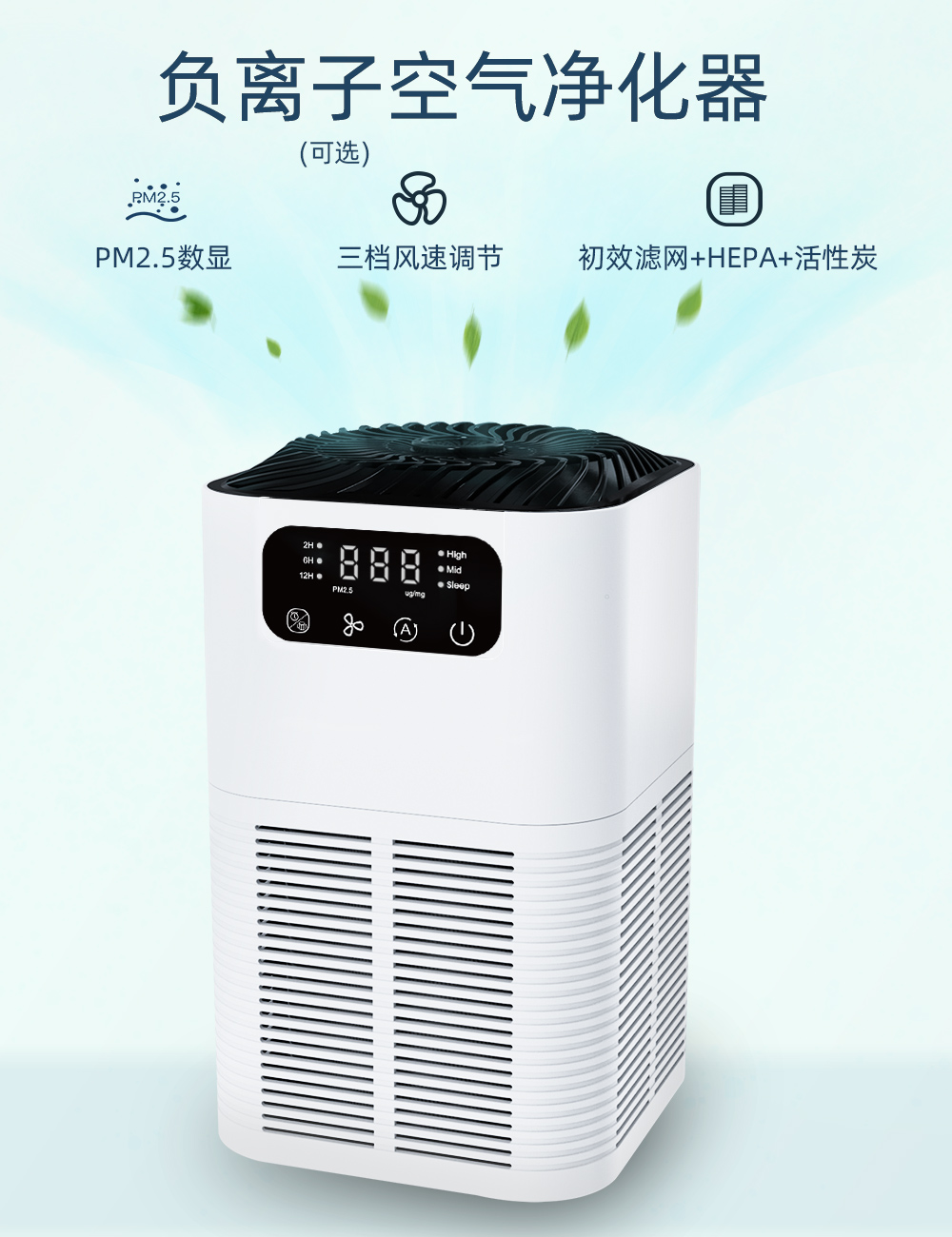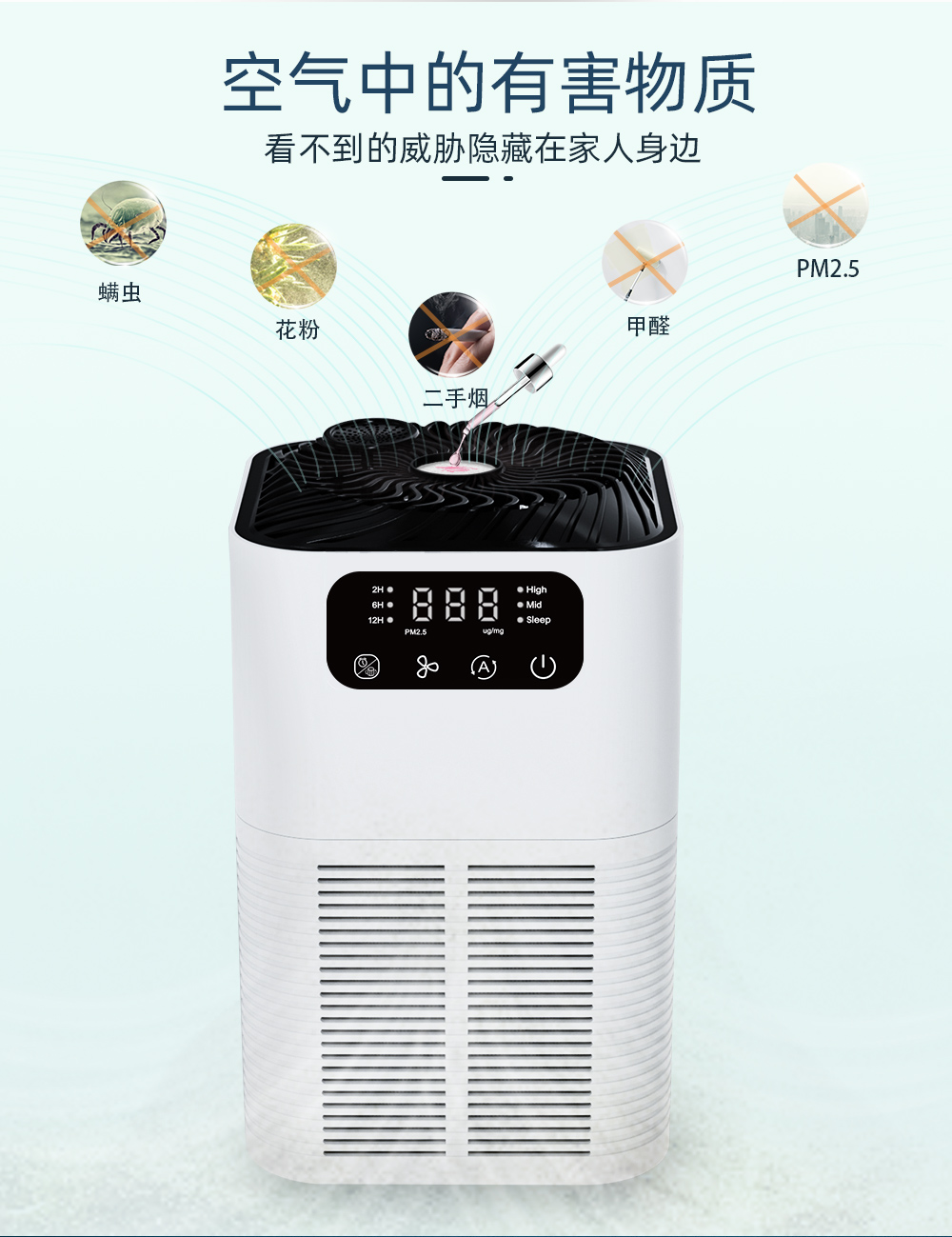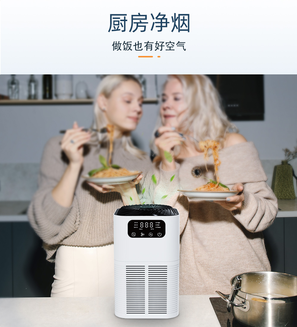強化過濾係統:超細預過濾器、HEPA過濾器和活性炭過濾器,能夠吸收異味和煙霧,有效去除99.99%以上的灰塵、花粉和空氣中0.3微米的微粒。