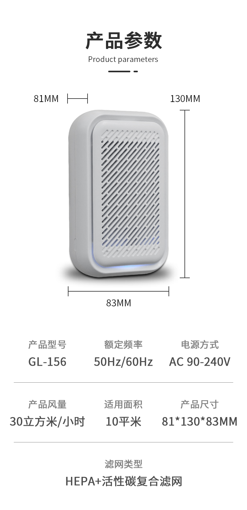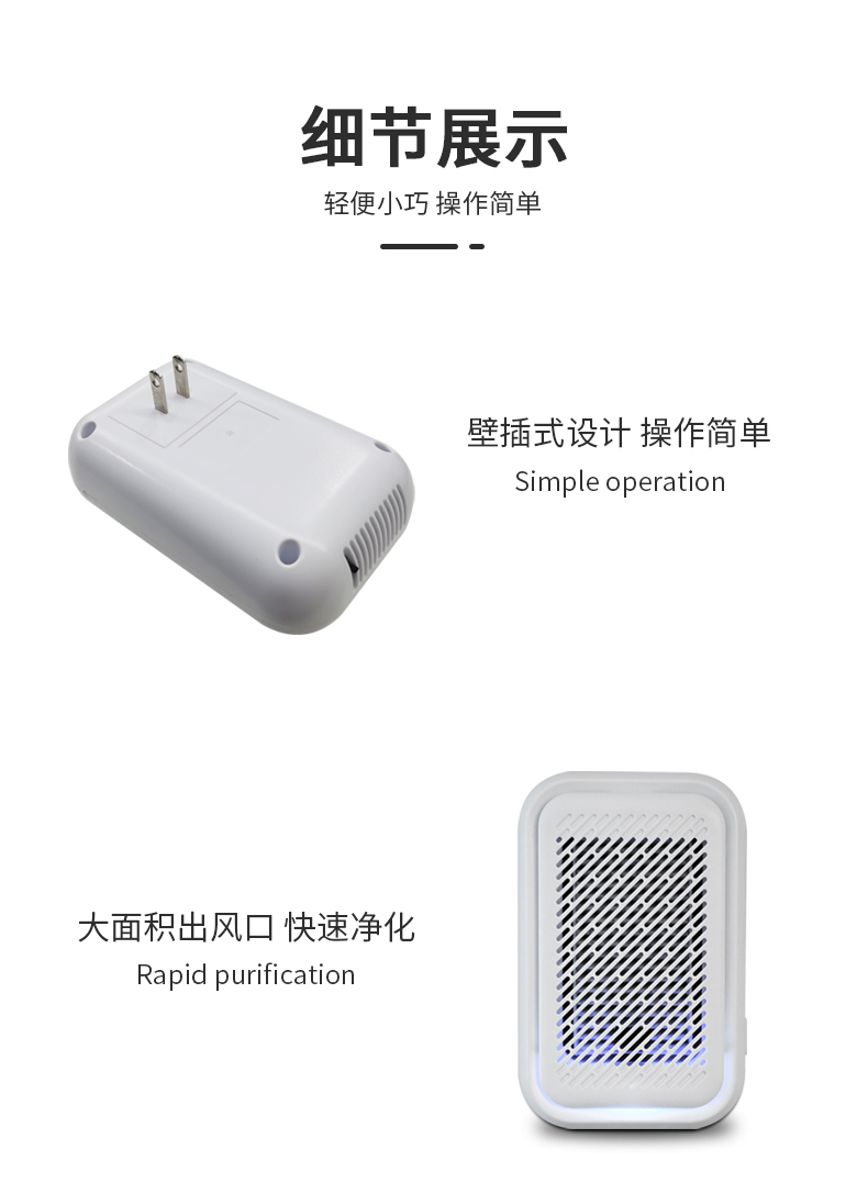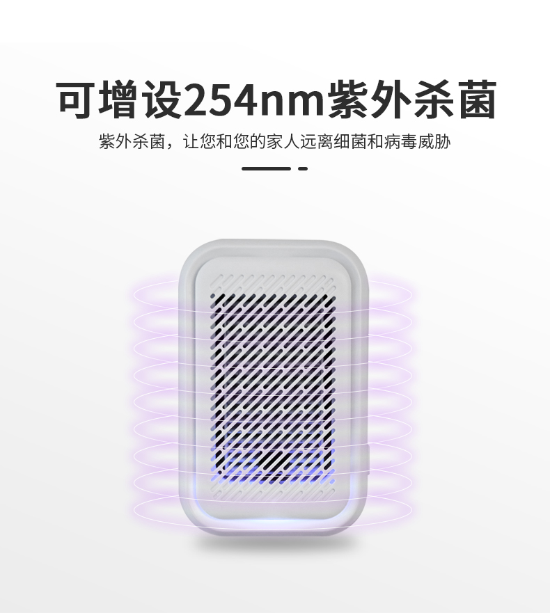 小巧便捷:一手隨心掌握,直插式設計,低消耗、低功率,輕鬆創造健康舒適的呼吸環境。